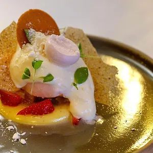 Das Halbert verfügt über ein À-la-carte- Restaurant Blume, das vegetarische Gerichte serviert.